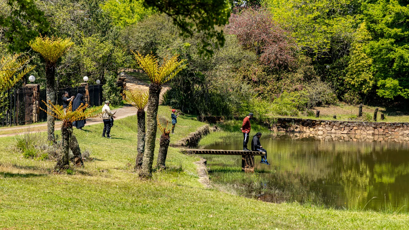 Take a stroll through our extensive gardens where manicured lawns lead into natural and indigenous veld. Look out for banks of colourful azaleas and foxgloves in the springtime and purple hydrangeas around Christmas time. Follow the water course of the mountain streams, via a series of dams and weirs and find some secret walkways and paths. For a rest, find some gentle shade and seating places in groves of old trees.