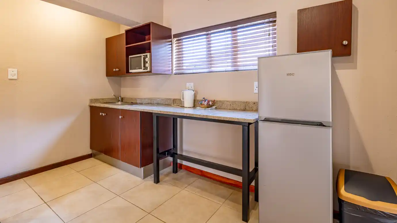 • Limited self-catering in kitchenette with fridge, microwave oven, crockery and cutlery